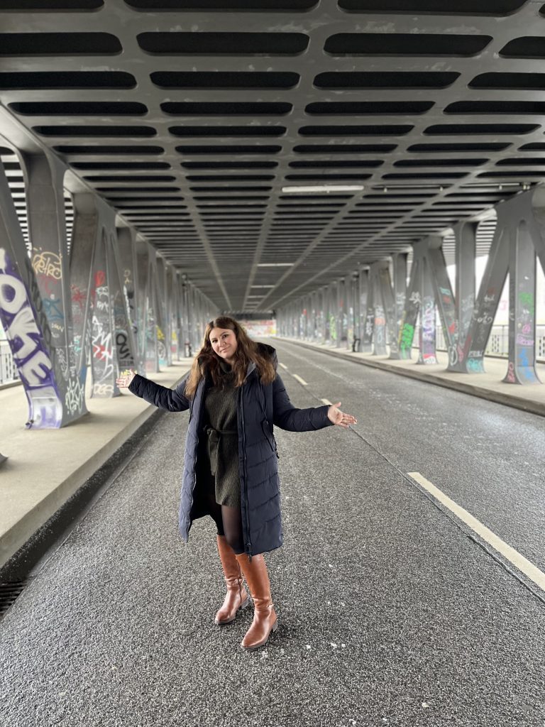 Fun-Fact: Die Oberhafenbrücke, die sich direkt am Restaurant befindet, gehört zu einer der meist fotografierten Brücken der Stadt. Da haben wir es uns natürlich nicht nehmen lassen, uns auch einmal auf der Brücke festzuhalten.